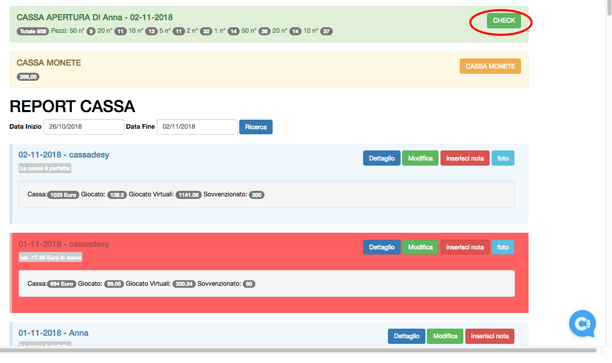 Questo tool è stato pensato per fare il controllo di cassa veloce durante il turno dell’operatore, non è possibile effettuare il check se la cassa è stata già chiusa.